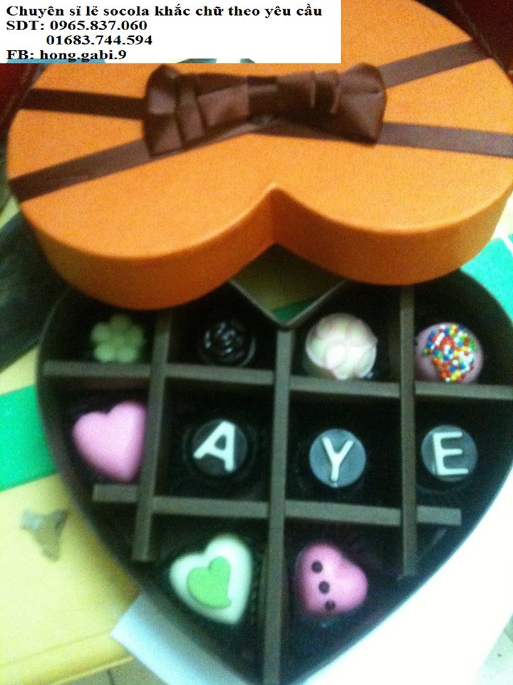Bán buôn, bán lẻ socola số lượng lớn, mà giá cực rẻ.Hiện bên mình chuyên đổ buôn cho các cửa hàng, đại lý bán socola valentine trên khắp địa bàn Hà Nội, mẫu mã đa dạng, chiết khấu cao. Hiện bên m cần tuyển thêm đại lý cũng như khách buôn, CTV bán socola trên khắp cả nước.