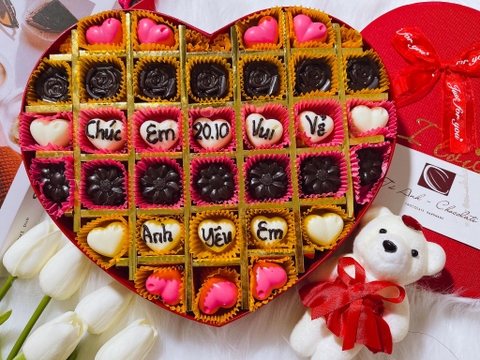 Socola qùa tặng bạn gái với dòng chữ ANH YÊU EM. Chắc chắn rằng bạn gái sẽ thật bất ngờ khi nhận được hộp socola ngọt ngào đầy lãng mạng vào đúng dịp 20/10.